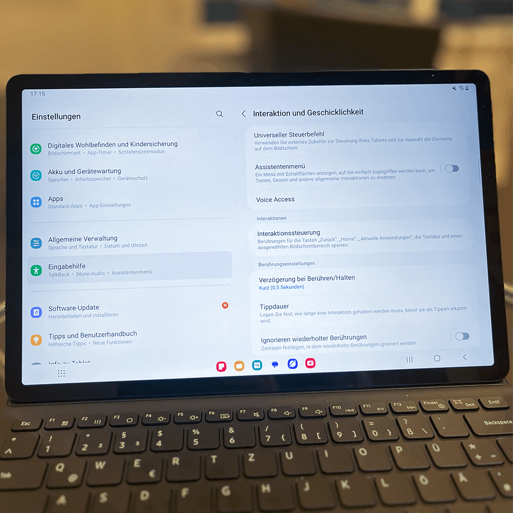 - Touch-Einstellungen anpassen: z. B. langsameres Tippen oder Verzögerung